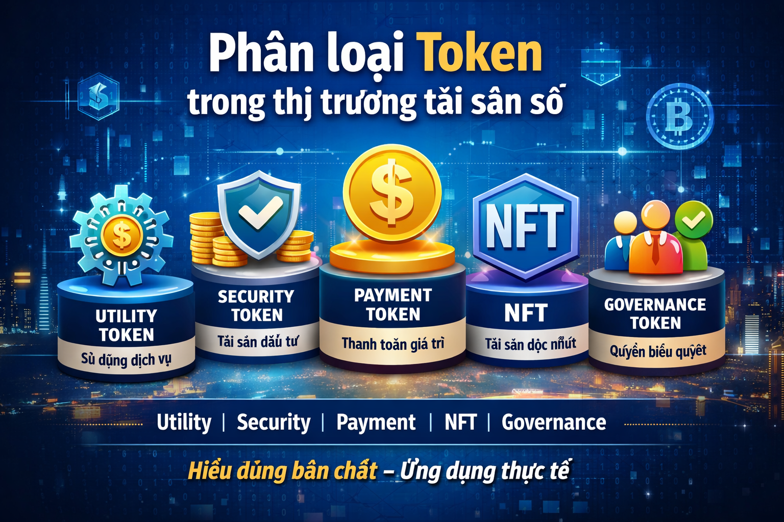 Sau khi nắm được khái niệm cơ bản về Token, bước tiếp theo để hiểu thị trường tài sản số là phân biệt các loại Token khác nhau. Mỗi loại Token có mục đích sử dụng, mức độ rủi ro và cách tiếp cận pháp lý riêng. Việc hiểu rõ sự khác biệt này giúp người tham gia thị trường tránh nhầm lẫn và có góc nhìn toàn diện hơn.