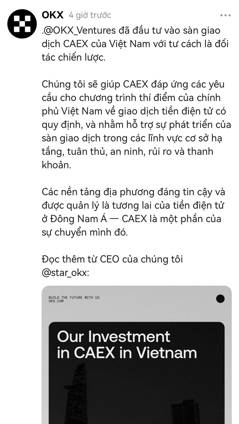 • Chia sẻ qua viber bài: OKX & HashKey Rót Vốn Vào CAEX: Việt Nam Sắp Trở Thành Thủ Phủ Tài Sản Số Khu vực?
